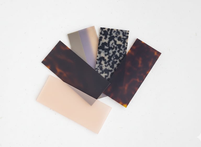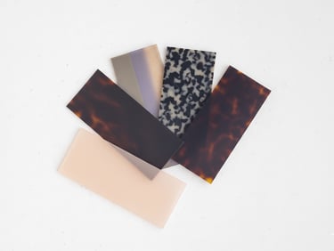 Selezione accurata di metalli, acetati e plastiche innovative. Colori e finiture sono studiati per conferire un carattere unico e stagionale alla collezione.